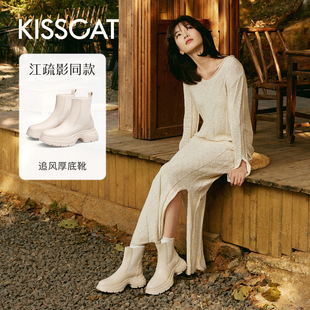 追风靴 真皮厚底切尔西靴加绒女 KISSCAT接吻猫 江疏影美洋同款由