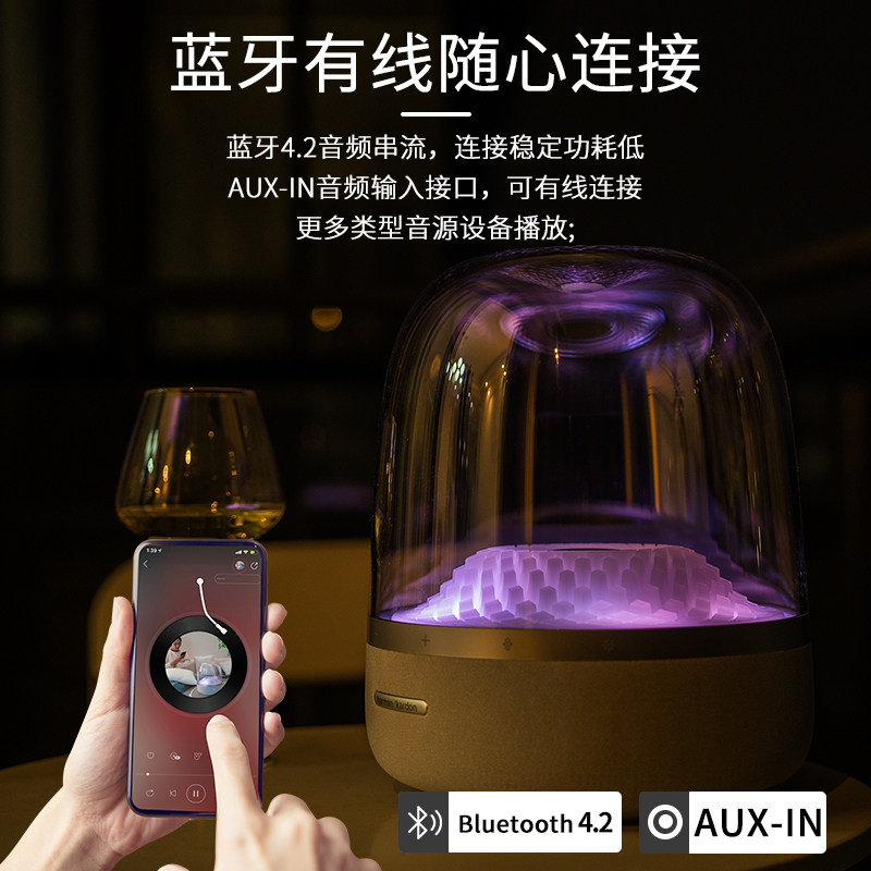 为您提供商品哈曼卡顿音乐琉璃4代蓝牙音响透明氛围灯家用桌面重低音电脑音箱的详细介绍,