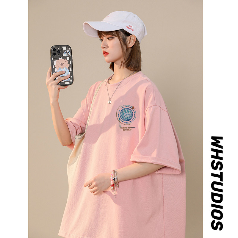 LA短袖 宽松百搭印花上衣白色11 T恤男女情侣落肩袖