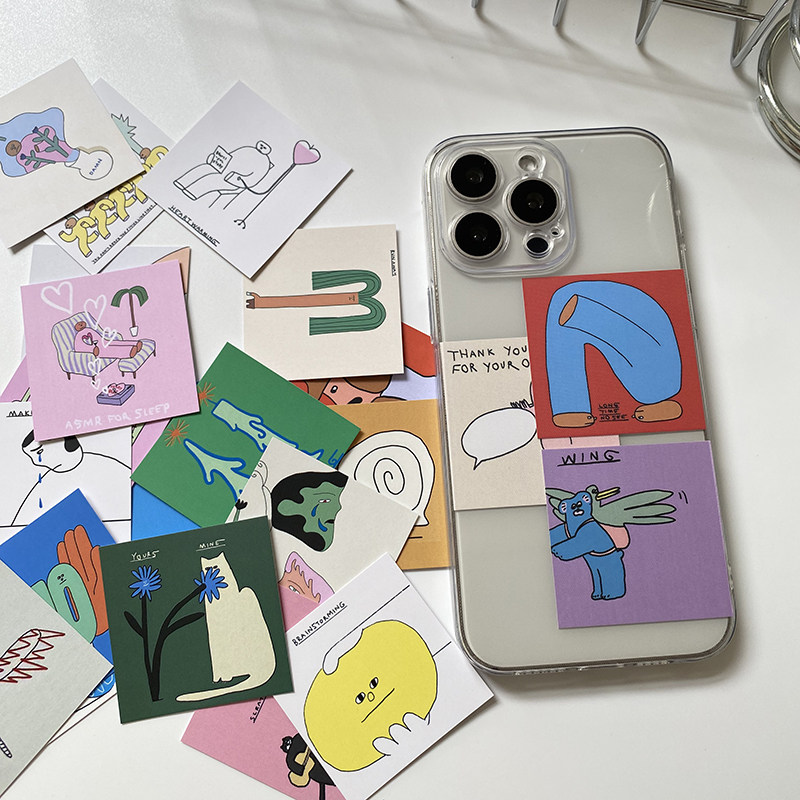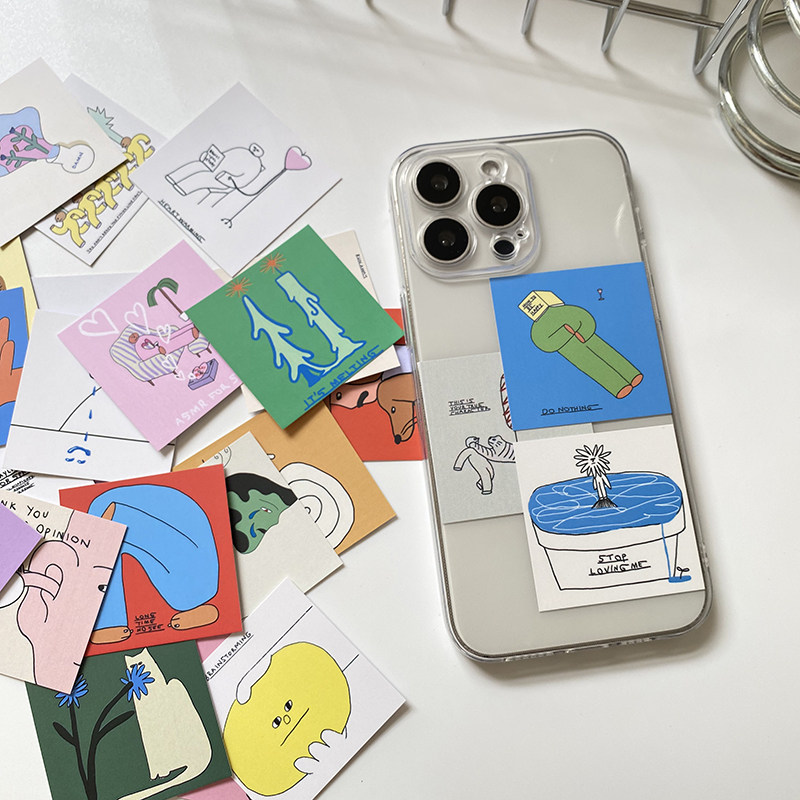 ins风韩国插画师可爱小卡片透明手机壳可放夹手机后面装 14创意华为软壳 饰适用于苹果16promax保护壳15个性由