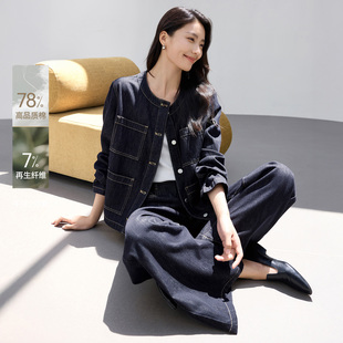 IHIMI海谧复古休闲外套一套牛仔套装 春季 夹克时尚 女士 两件套女装
