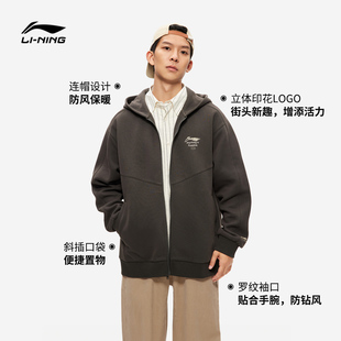 李宁外套男士 长袖 情侣连帽拉链卫衣宽松薄款 上衣女针织运动服 春季
