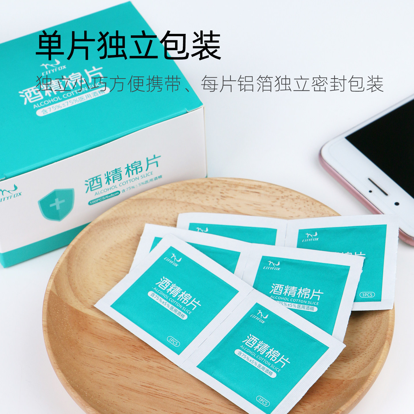 酒精棉片100片 10盒一次性75度消毒湿巾大尺寸擦手机屏幕单独包装