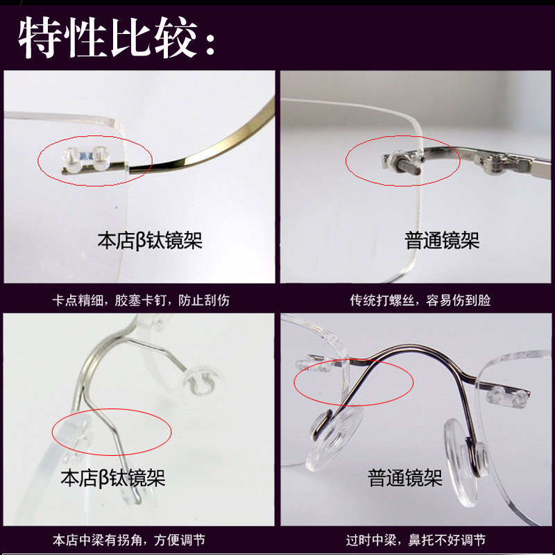 为您提供商品无框眼镜架 女款 纯β钛架眼镜 超轻韧可切边镶钻纯钛眼镜框 男款的详细介绍,