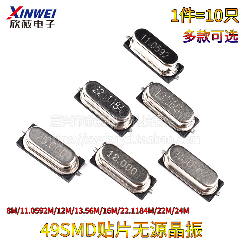贴片49SMD型无源晶振8MHz 16M24M25M11.0592M13.560M22.1184M 12M