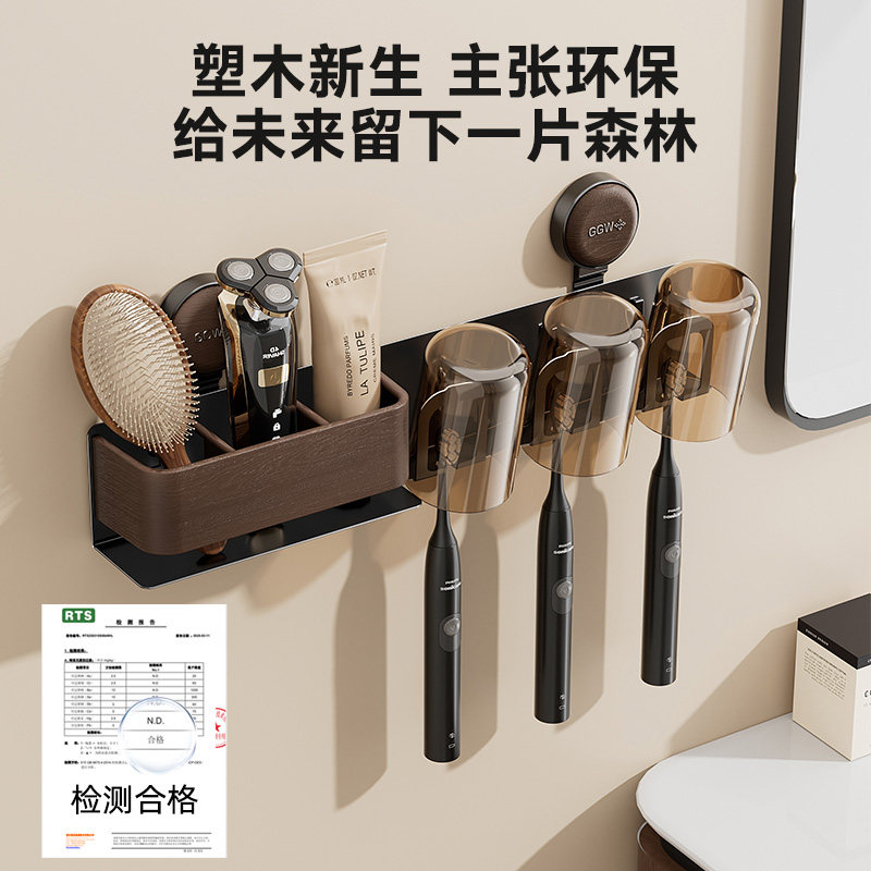 免打孔吸盘卫生间刷牙杯漱口杯电动牙刷架 中古风牙刷置物架壁挂式
