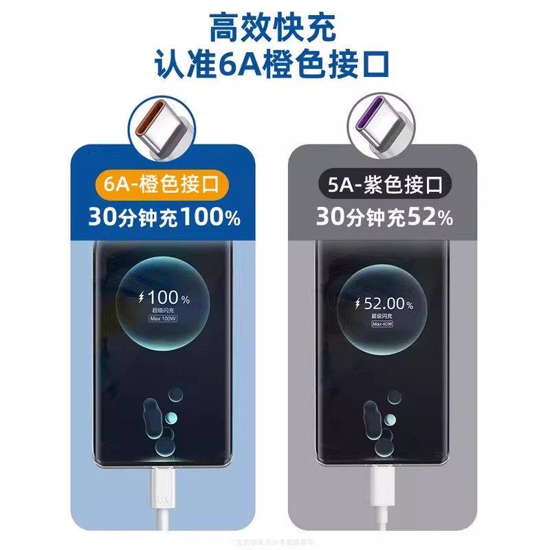 c数据线6A Type 120w超级快充 40pro充电器线nova7 9原8荣耀手机套装 5Ap30p40小米9安卓mate60 适用华为由