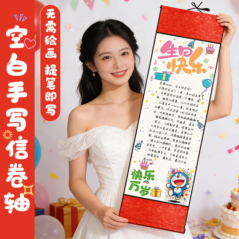 裱加厚立轴锦盒闺蜜手工diy信纸生日礼物半成品情书生日 空白手写信卷轴书法软笔硬笔专用挂轴半生熟宣纸免装由