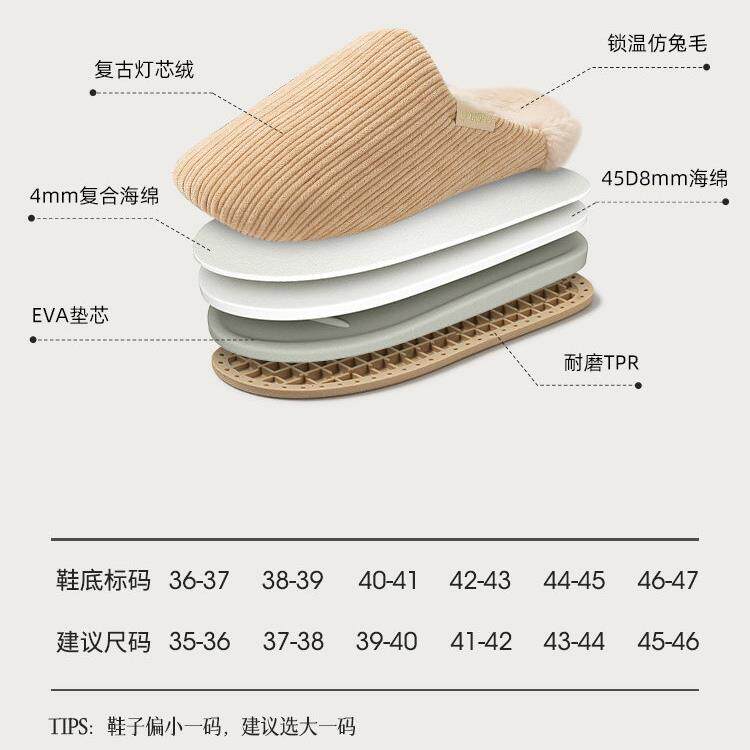 为您提供商品保暖情侣家居家用毛绒男秋冬季 女室内防滑2025新款 买一送一棉拖鞋的详细介绍,
