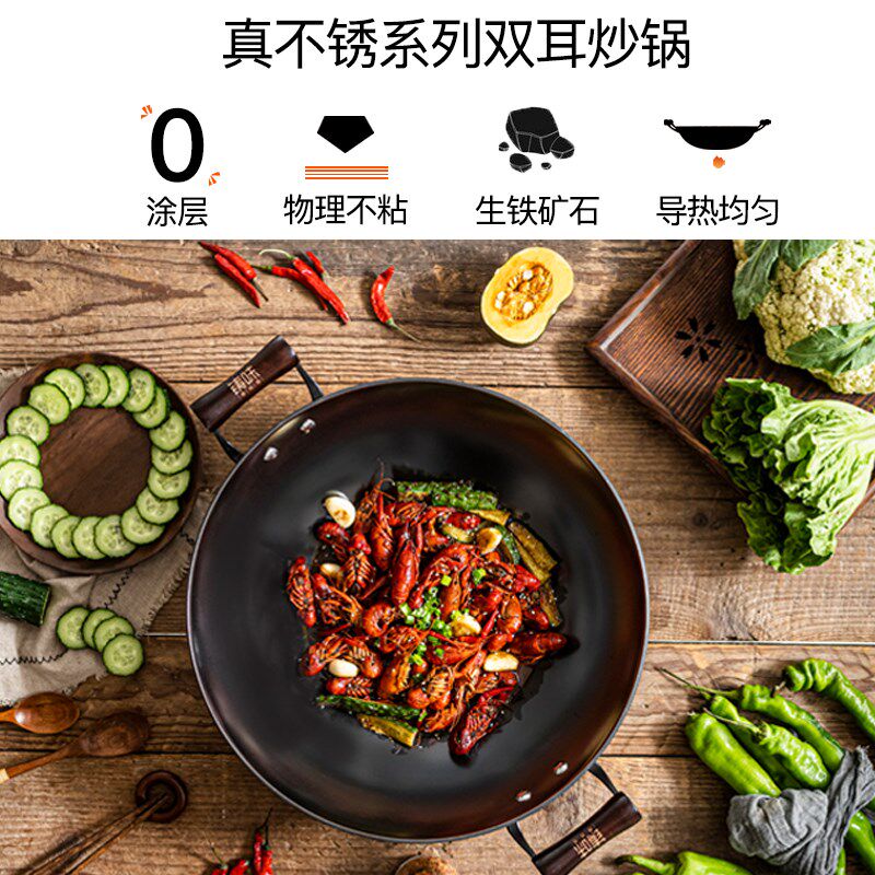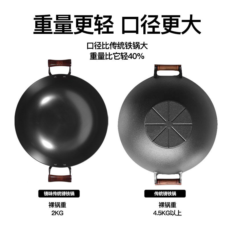 为您提供商品不粘锅炒菜锅 铸味铸铁锅真无涂层大容量少油烟电磁炉家用双耳老式的详细介绍,