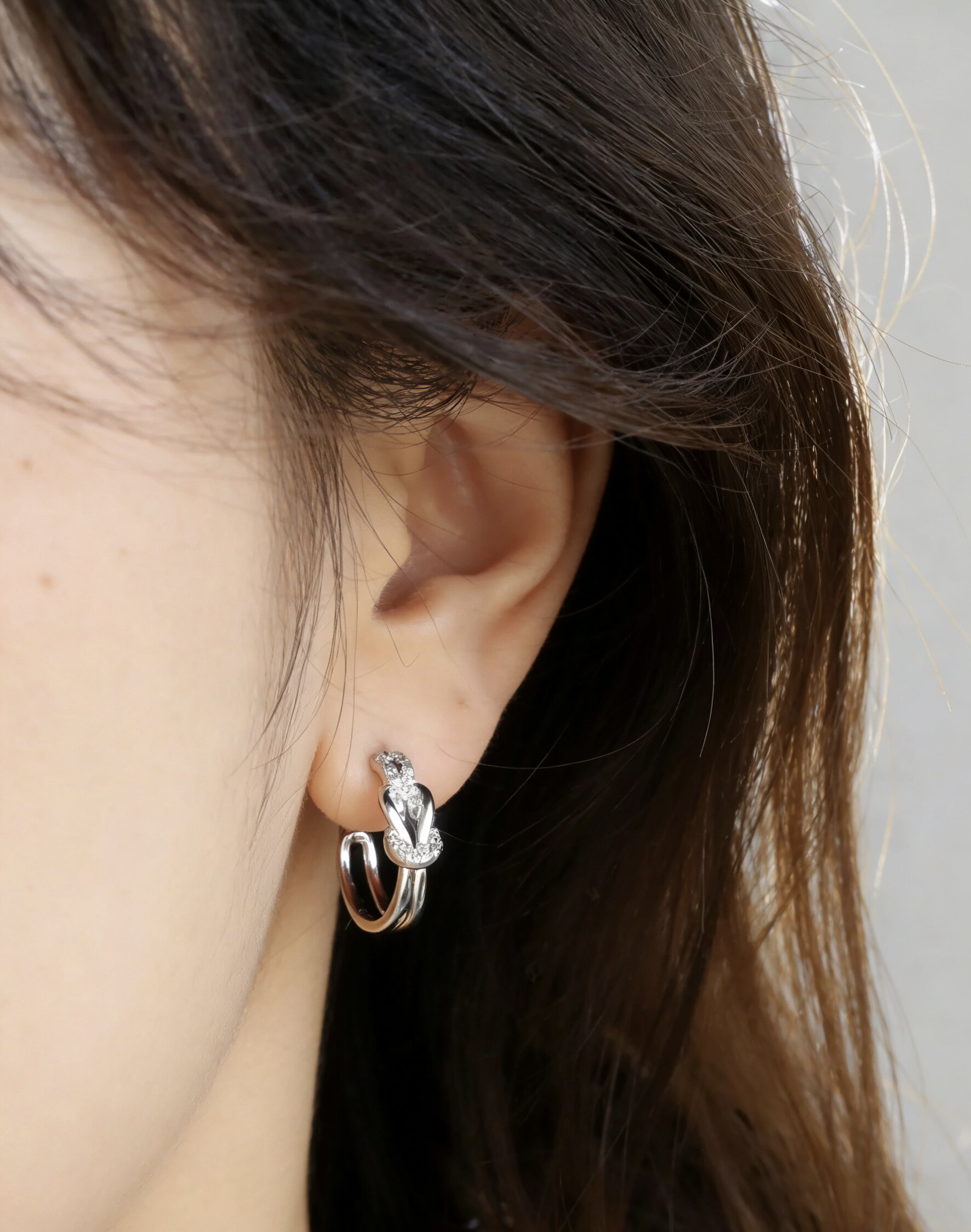 银色镶钻绳结精致耳环女独特高级感轻奢耳钉 解忧饰物小众设计个性