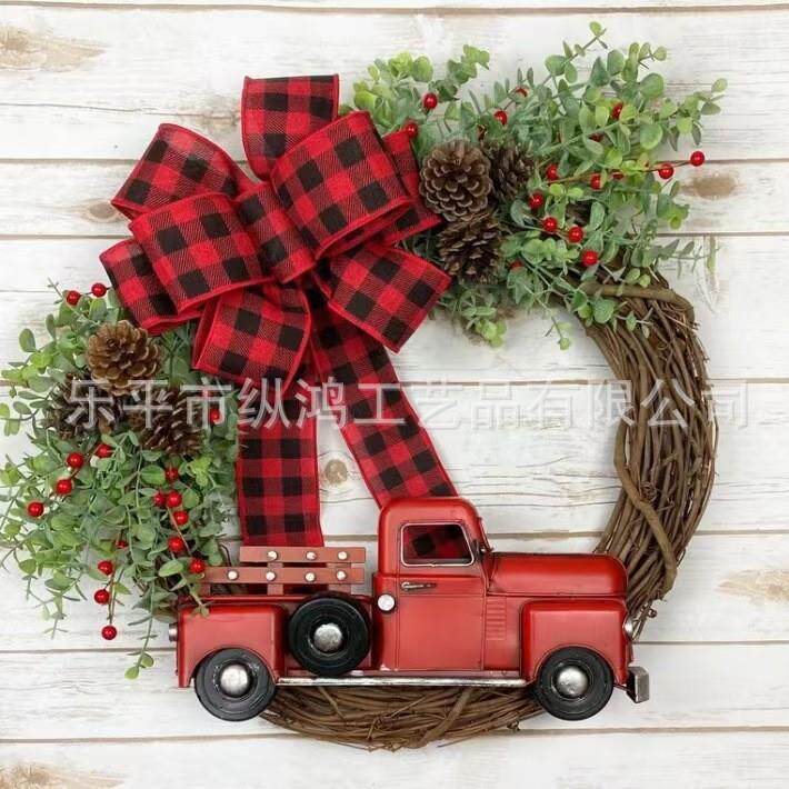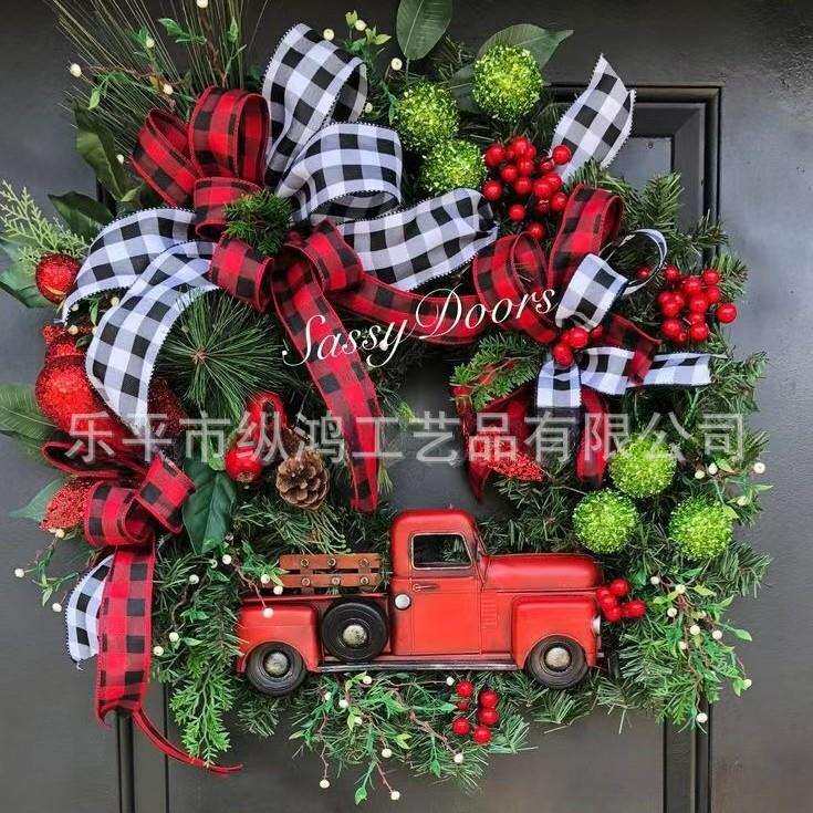 跨境亚马逊爆款 饰 蝴蝶结织带圣诞节花环立体卡车门挂场地布置装