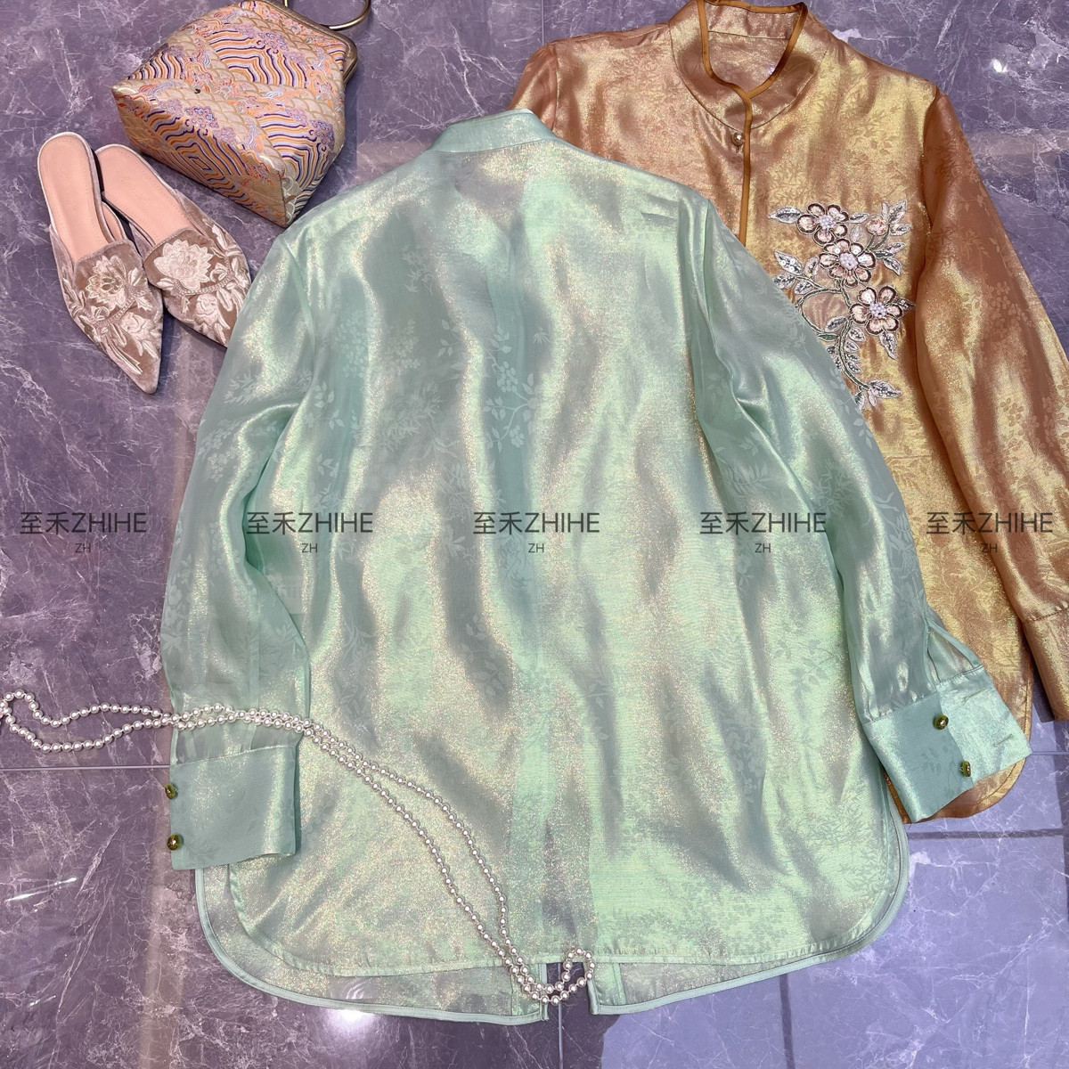 一念轻奢老钱新中式 含100真丝 不含项链 t1035 真丝欧根纱小衫由