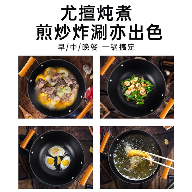 古法龟纹铸铁锅臻三环家用炖锅双灶小元 炒锅不粘锅煤气 宝耳老式由