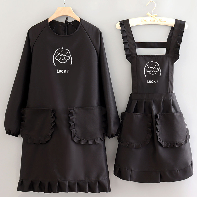 透气家用厨房做饭围腰帆布耐磨女罩衣新款 工作服 围裙长袖 简约时尚