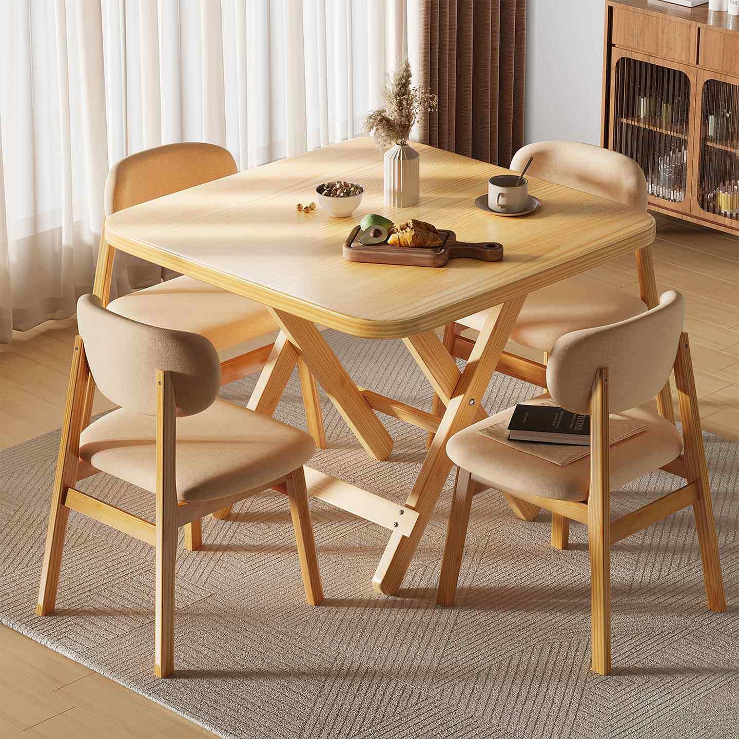 夜市摆摊四方桌家用小户型出租房吃饭桌子 纯实木可折叠餐桌便携式