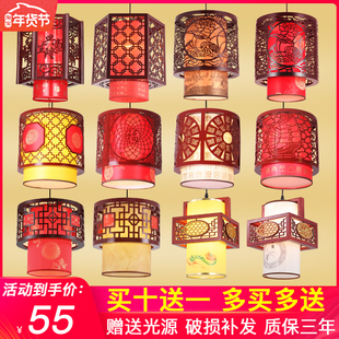 木艺小吊灯中国风古典餐厅饭厅阳台复古茶楼仿古火锅店灯灯笼 中式