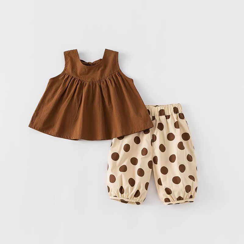 小女孩洋气时髦无袖 女童套装 夏季 新款 女宝宝休闲背心两件套 娃娃衫