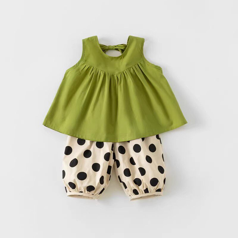 小女孩洋气时髦无袖 女童套装 夏季 新款 女宝宝休闲背心两件套 娃娃衫由