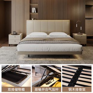 真皮床2米x2米2主卧大床现代轻奢高级感1米8皮艺软包储物婚床 意式