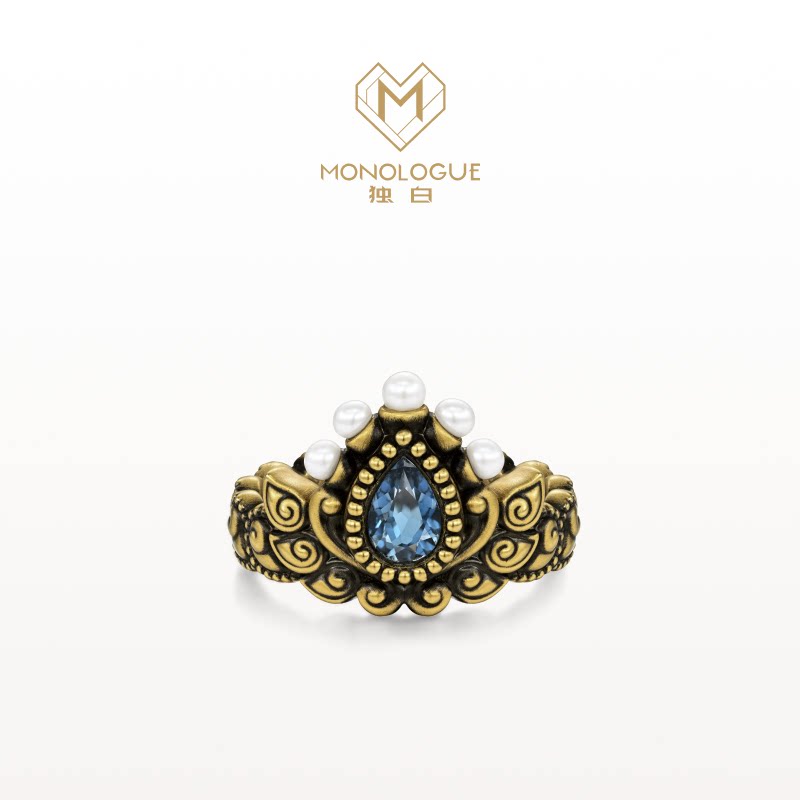 MONOLOGUE独白北纬三十度复古黄金托帕石珍珠戒指MRV90生日礼物由