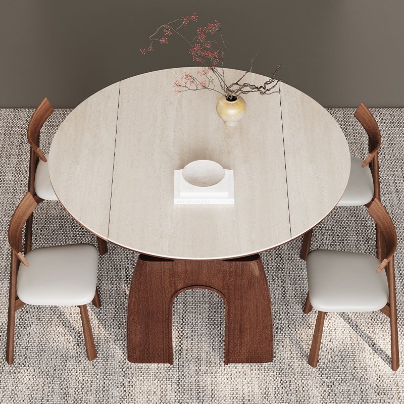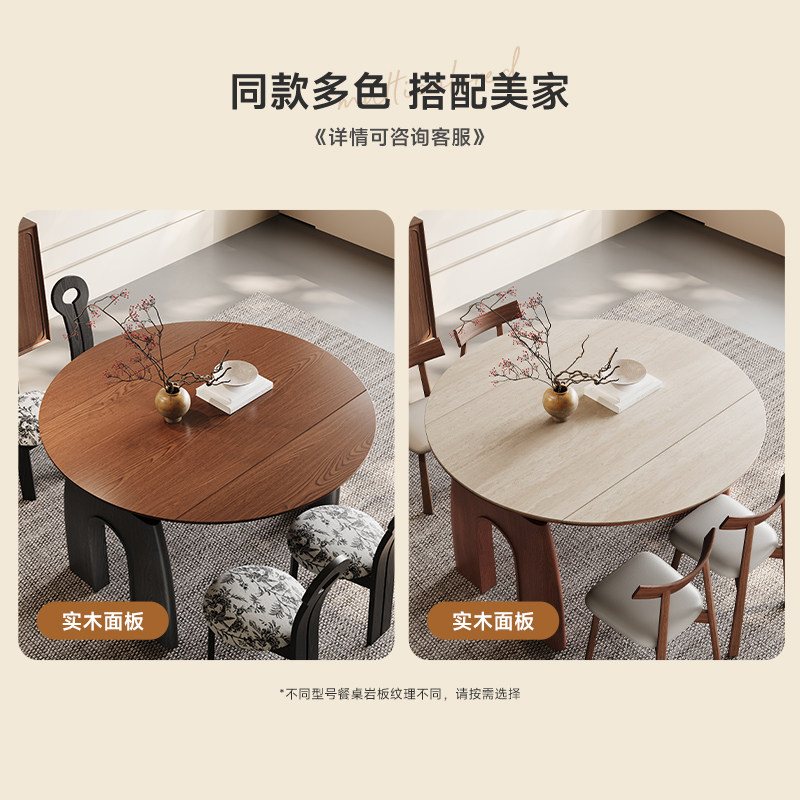 为您提供商品中古风实木折叠餐桌可变圆桌伸缩家用小户型洞石岩板吃饭桌子 法式的详细介绍,