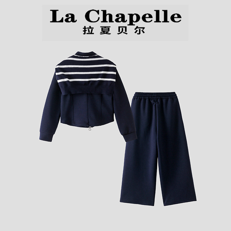 拉夏贝尔女童套装 新款 洋气儿童学院风女孩卫衣裤 子两件套 2026春季