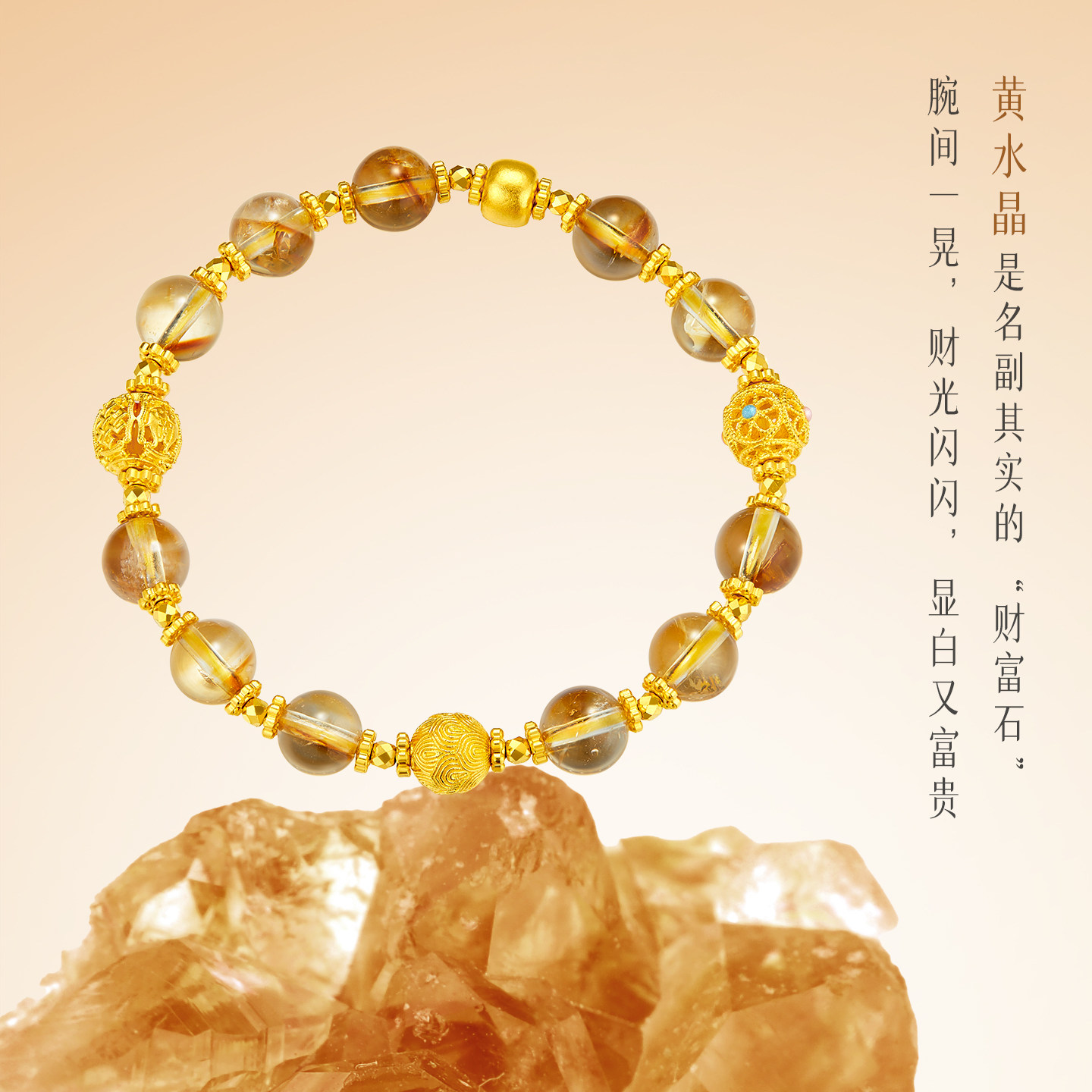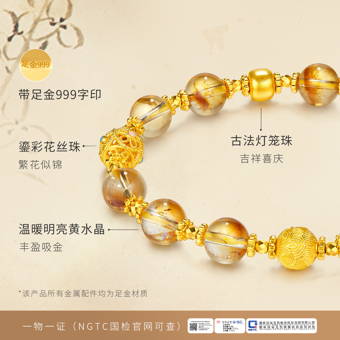 金至尊水晶金多宝黄金手链灯笼珠999足金手链古法金手串生日礼物由