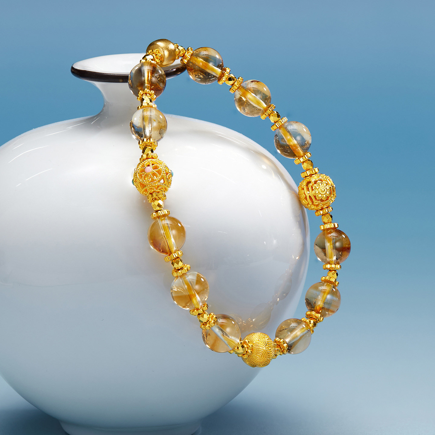 金至尊水晶金多宝黄金手链灯笼珠999足金手链古法金手串生日礼物