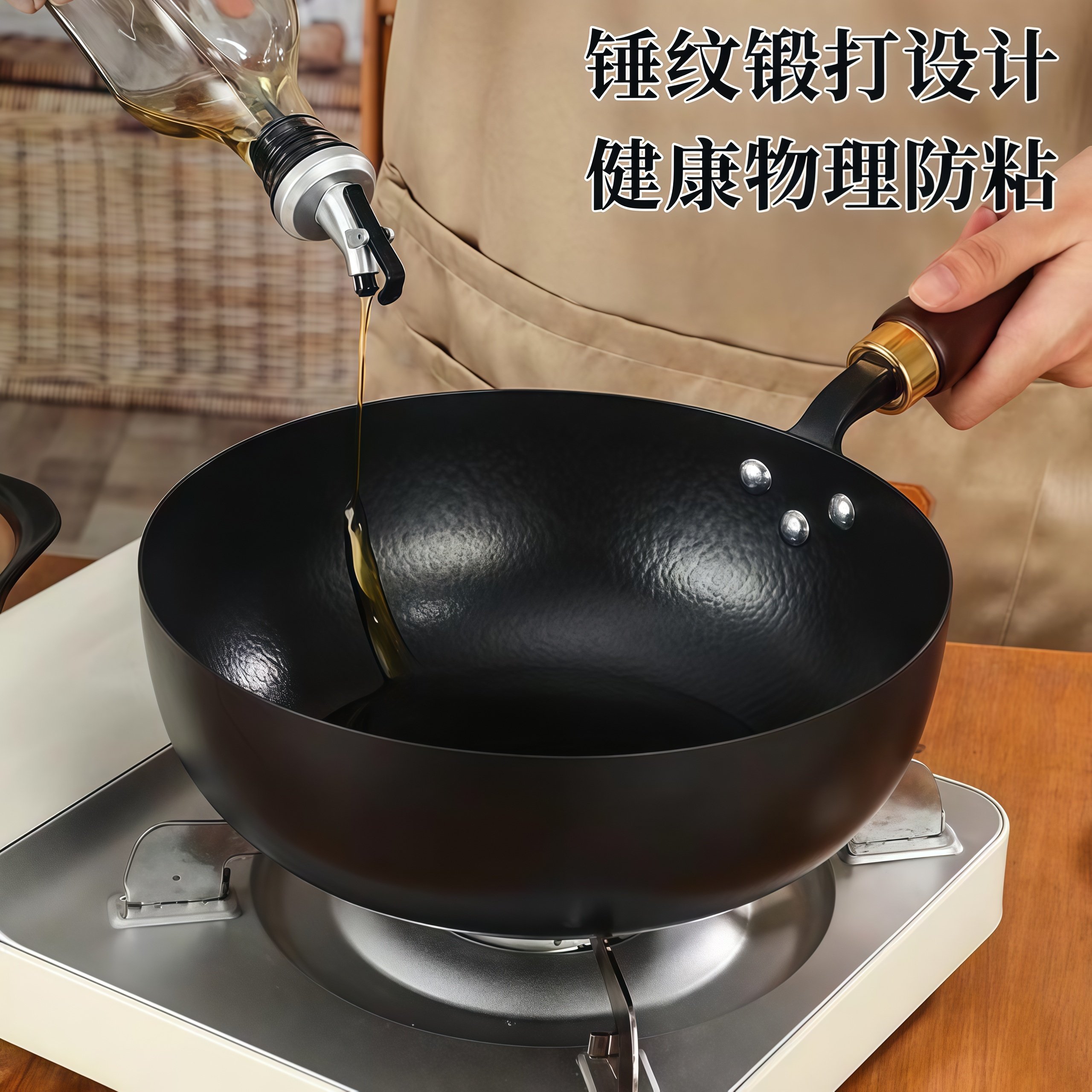 炒锅家用不粘锅无涂层燃气灶适用 章丘炒菜锅传统铁锅官方旗舰老式
