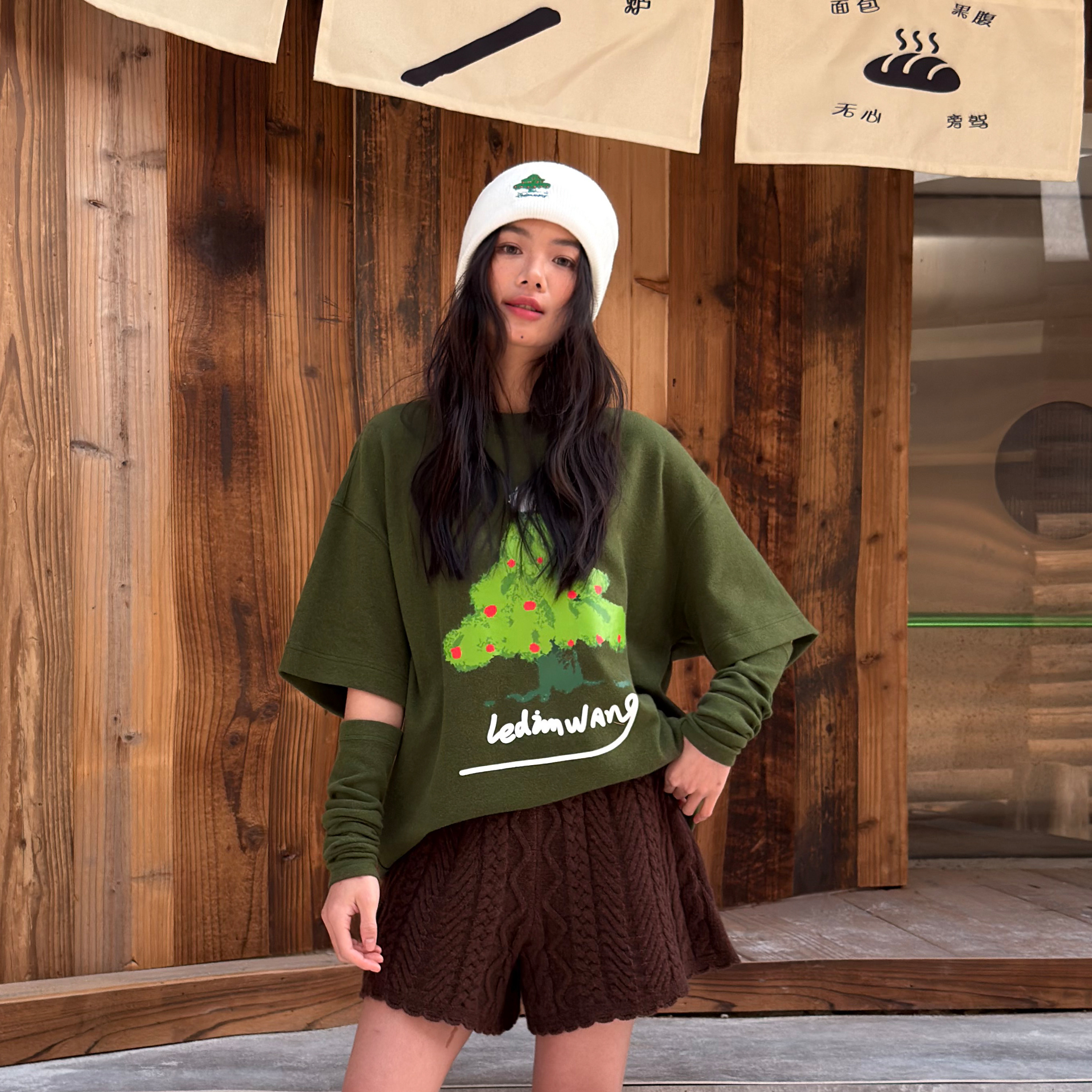 羊毛袖 圣诞限定 WANG 绿色时尚 穿搭配件新款 套 LEDIM由