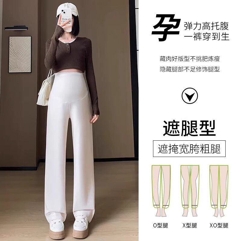 婧麒孕妇糯米阔腿裤 孕妇装 2025新款 秋冬外穿托腹不勒肚子加绒长裤