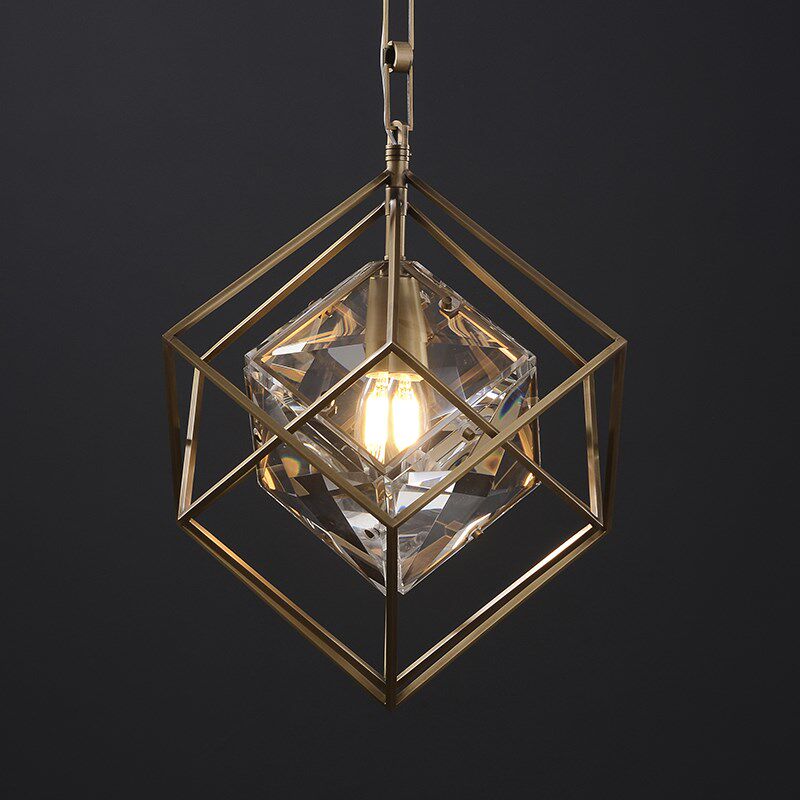 全铜魔方吊灯创意入户玄关入户水晶吧台灯书房卧室床头灯 现代美式由