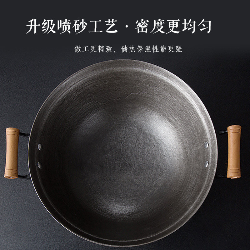 为您提供商品家用铸铁锅炒锅防烫把手加厚无涂层不粘 圆底双耳铁锅加深传统老式的详细介绍,