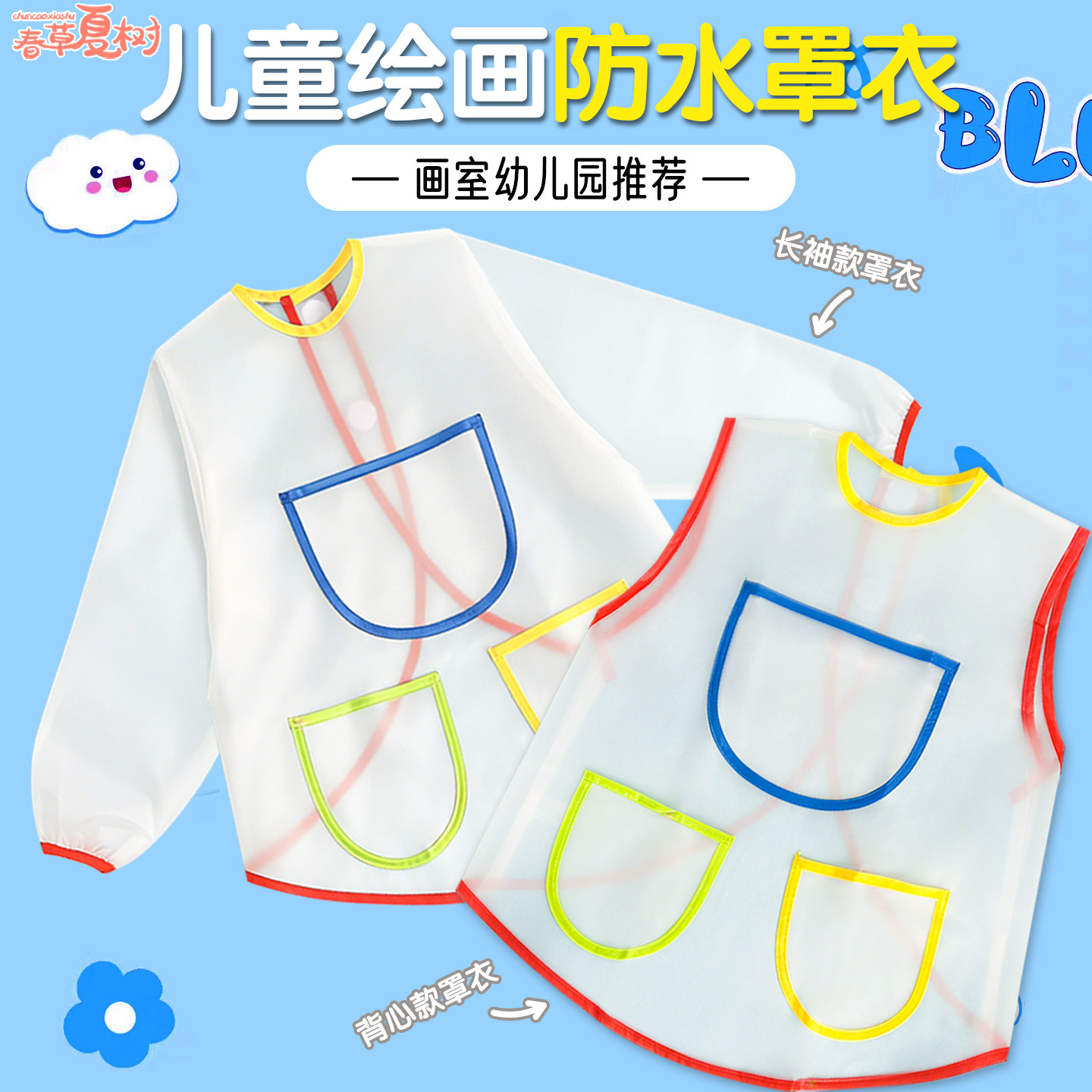宝宝反穿衣 儿童画画透明防水罩衣涂鸦画画衣美术绘画围裙透气长袖由