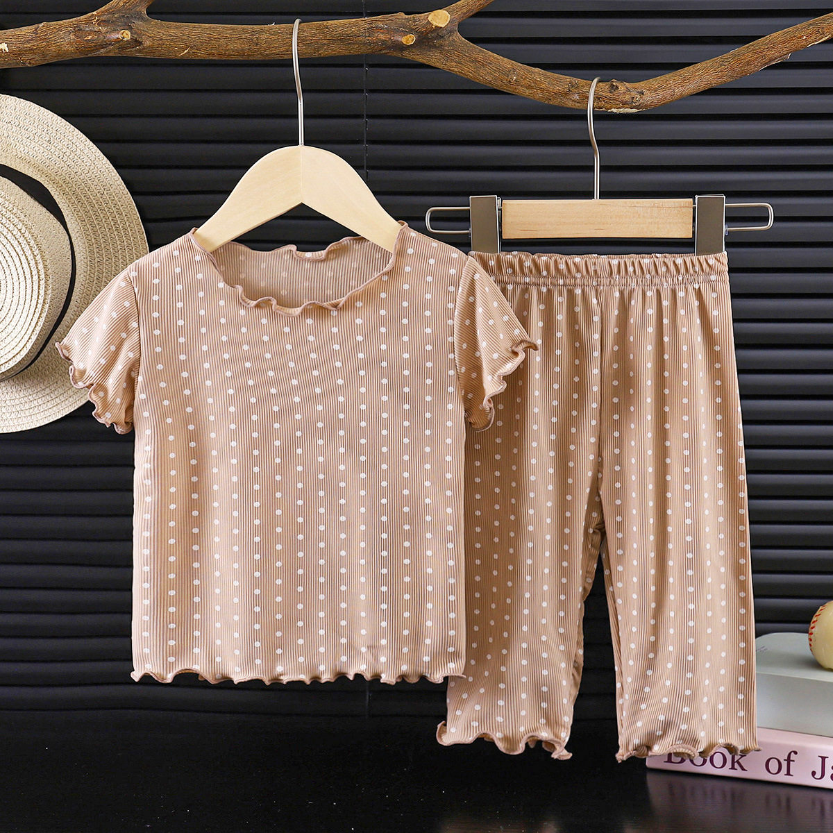 两件套洋气韩版 夏季 家居服J165 宝宝夏装 圆点套装 新款 女童外穿短袖
