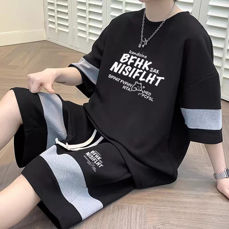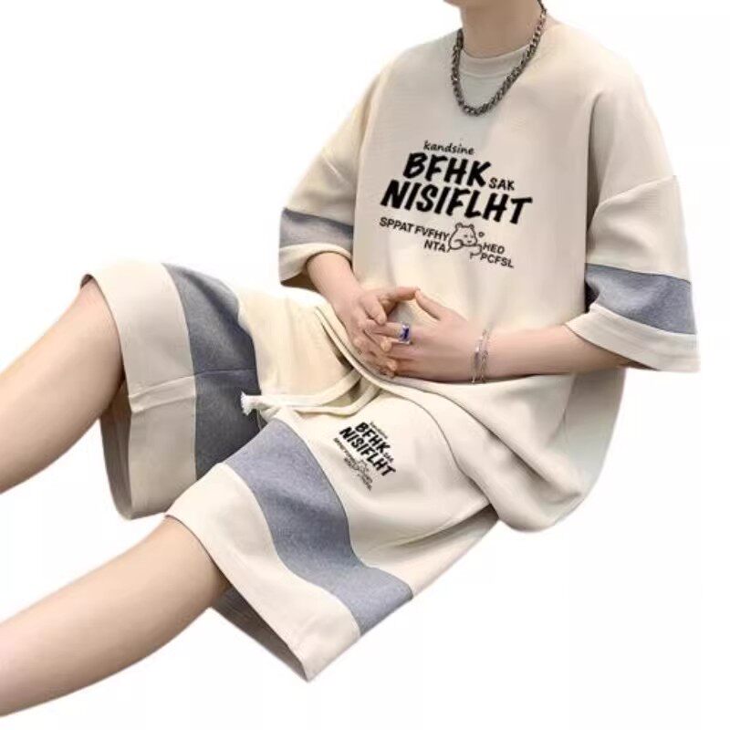 夏季 男款 套装 一套搭配短裤 两件装 T恤青少年港风ins潮流男装 短袖