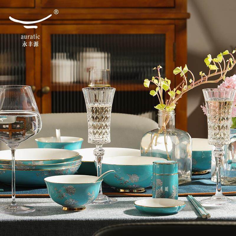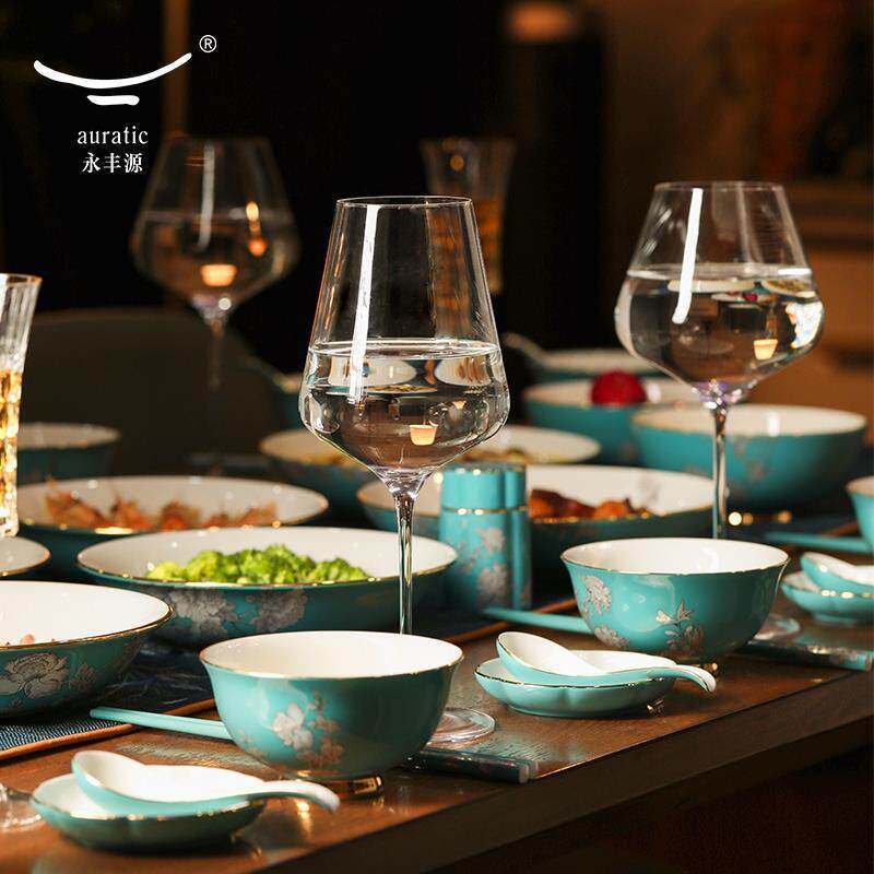 永丰源 陶瓷碗 水墨牡丹51头餐具套装由