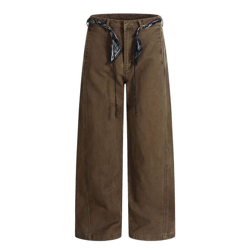 裤 Y6013美式 弯刀型休闲工装 饰设计男式 高街复古男女款 水洗腰带装由