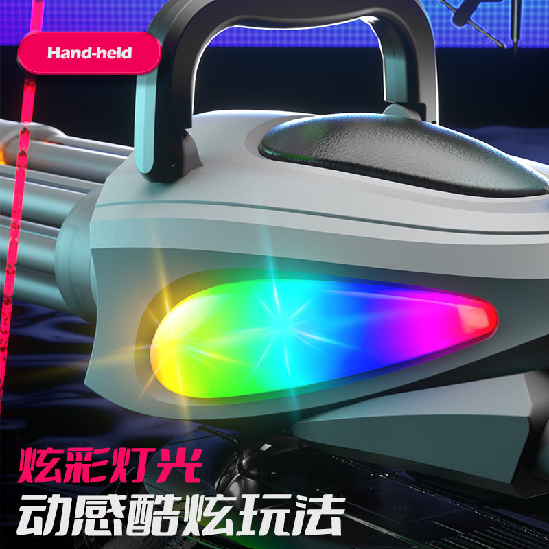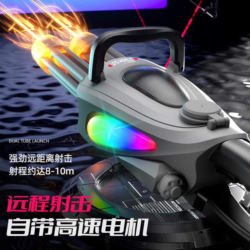 双管加特林水枪大号抢爆闪七彩灯光电动高速连发大容量户外戏水枪由
