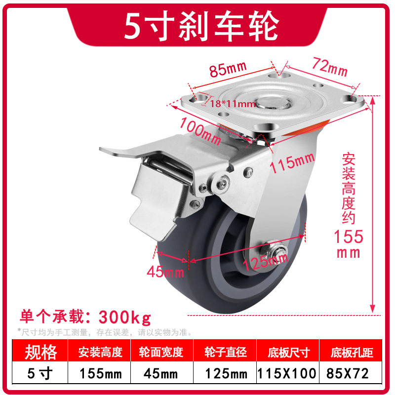 4寸5寸6寸8寸推车拉车轮脚轮滚轮 静音万向轮承重TRP橡胶轮t重型由