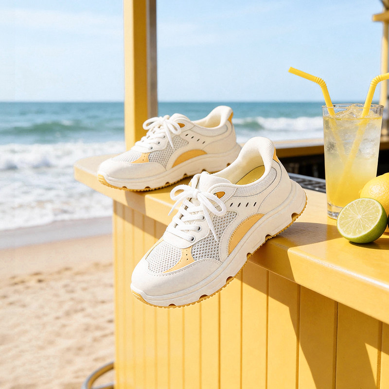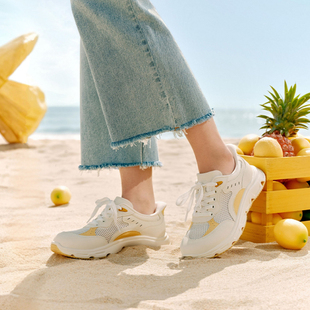 2026春夏新款 银熠 骆驼女鞋 厚底增高银色 休闲网面透气运动老爹鞋