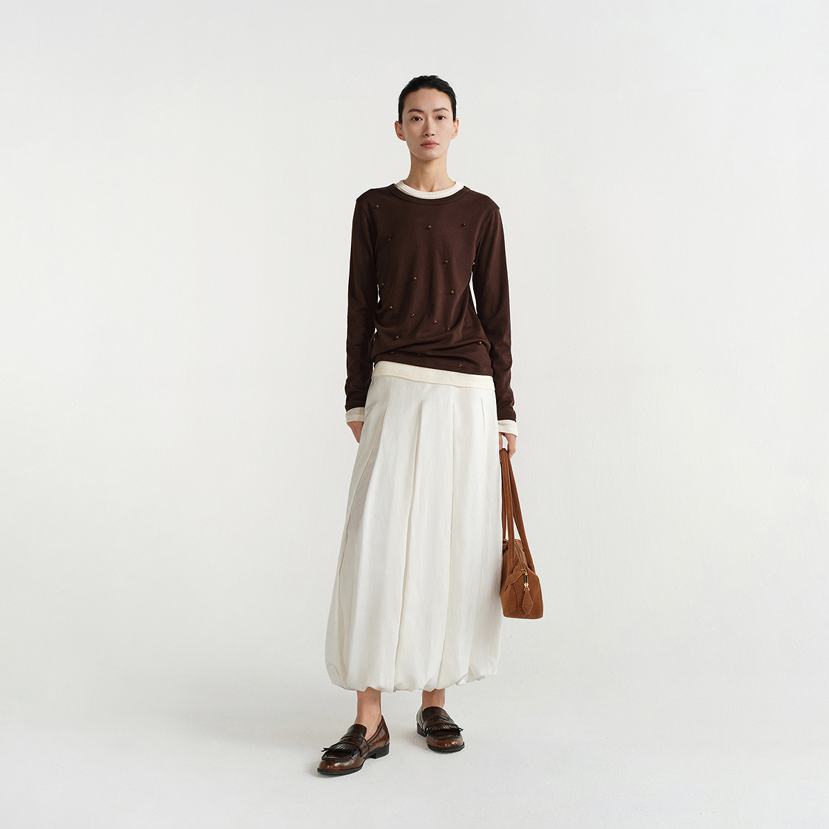 MESUX米岫26春清爽重工立体褶皱蓬松花苞气球半身裙MOSUS402由