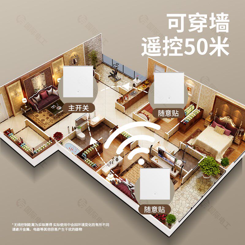 无线遥控开关双控免布线面板家用电灯子母220v远程控制随意贴智能