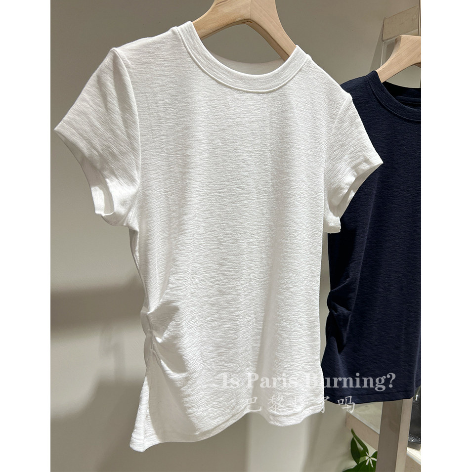 为您提供商品设计感褶皱纯色短袖 T恤上衣女 简约百搭时尚 捏褶圆领T的详细介绍,