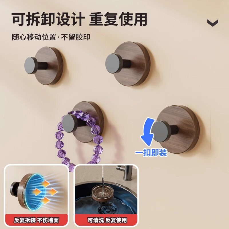 为您提供商品置物架免打孔收纳架挂架 胡桃木纹吸盘旋钮挂钩家用厨房旋转壁挂式的详细介绍,