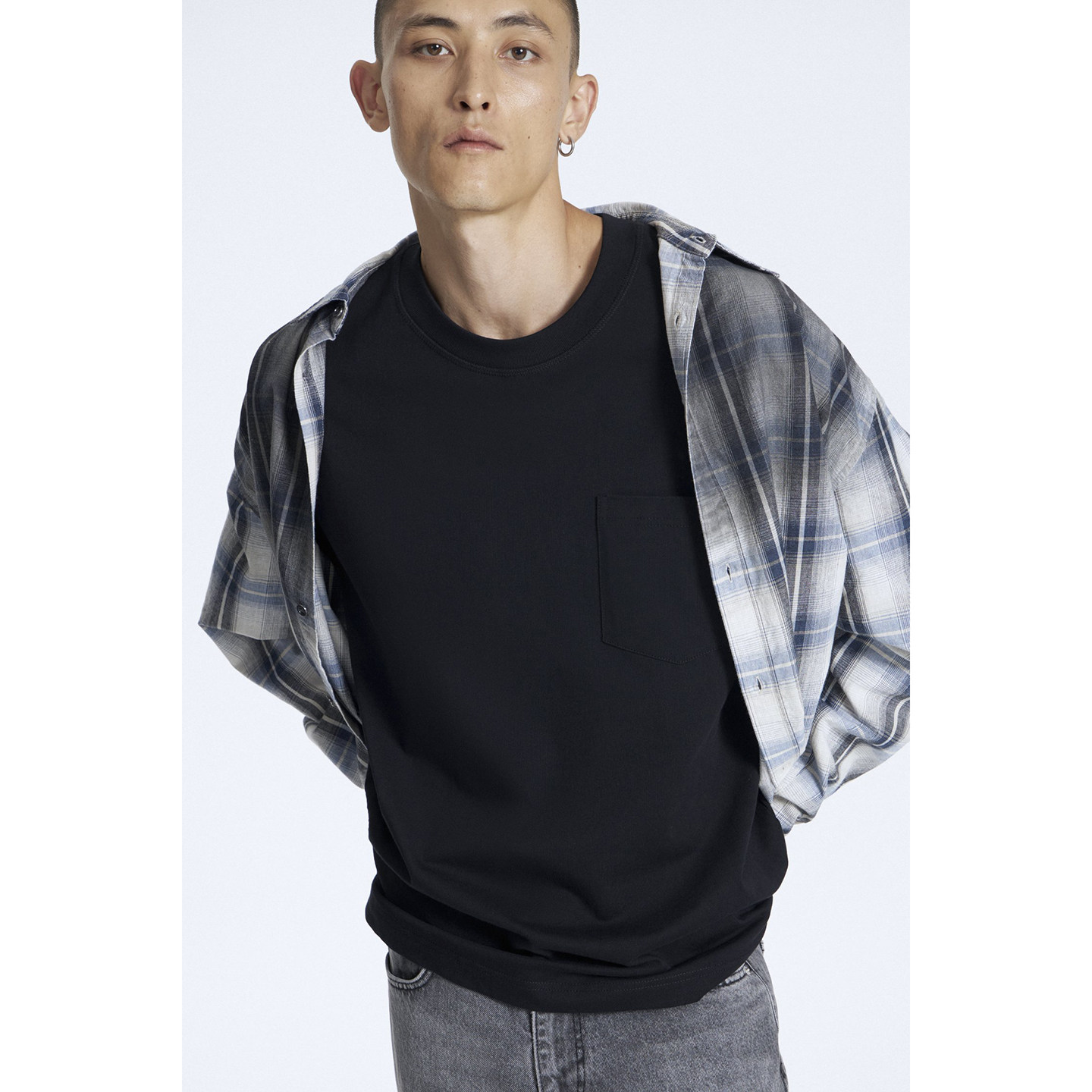 口袋棉质圆领T恤A14 3842 露营复古基础款 俄罗斯lim出口外贸男款由