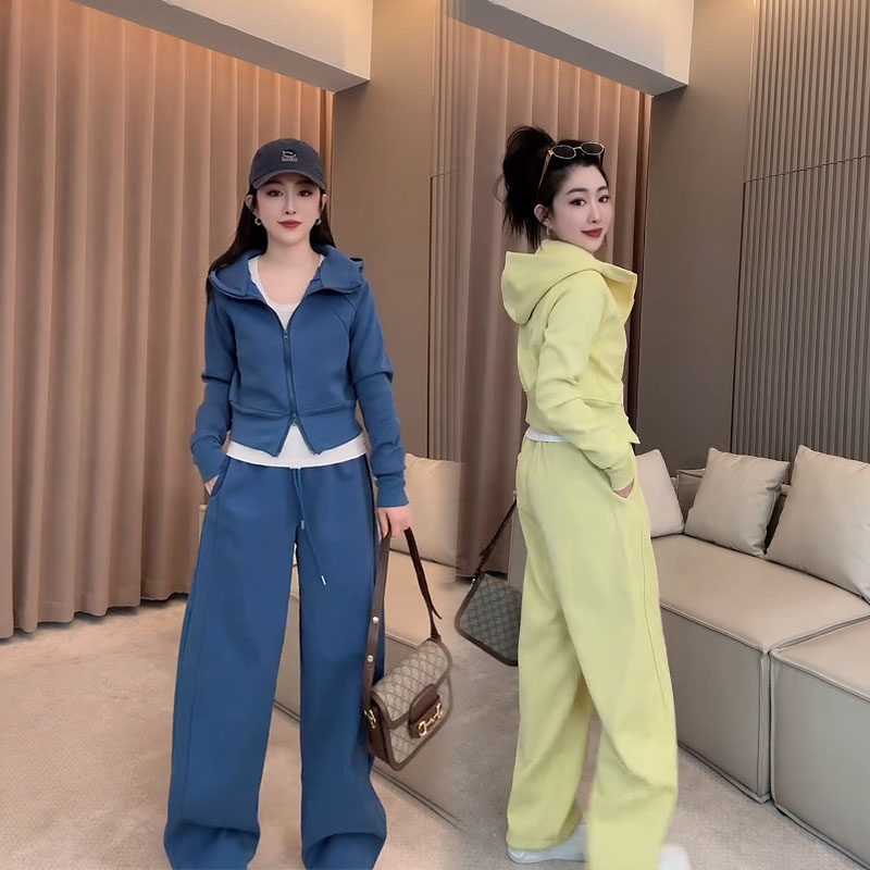 简约款 休闲运动套装 两件套 连帽拉链短外套卫裤 时尚 女2026春季 新款