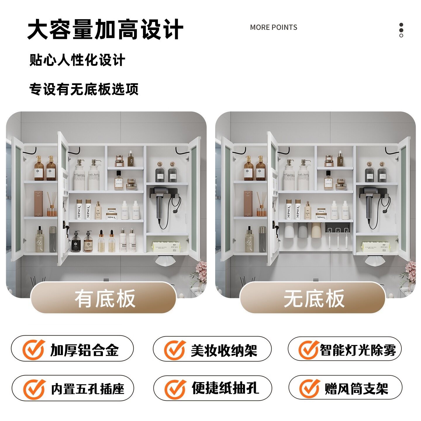 为您提供商品加高智能浴室镜柜单独卫生间收纳一体镜子带置物架插座太空铝镜箱的详细介绍,