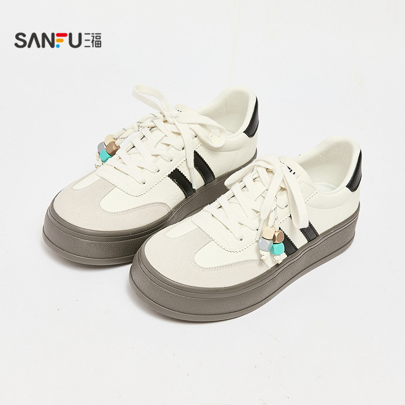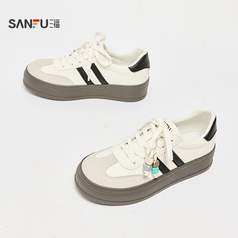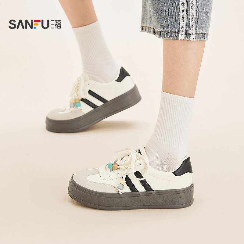三福女板鞋 韩系校园风串珠撞色低帮德训鞋 圆头女鞋 850671 春季由